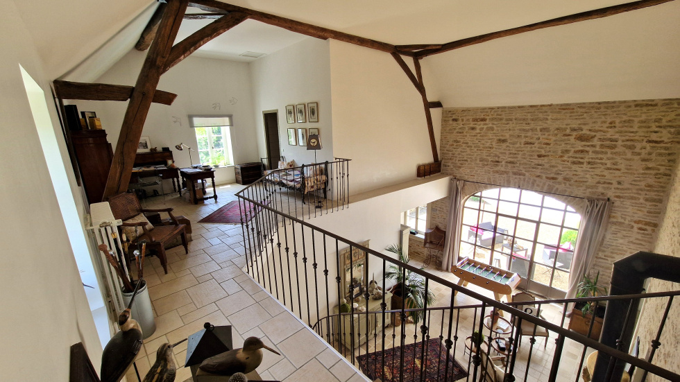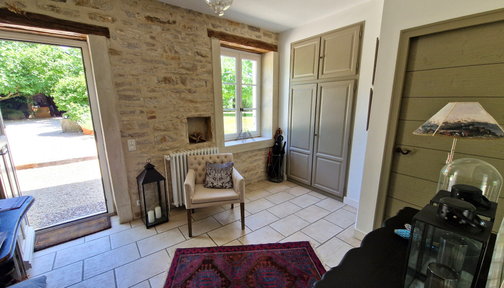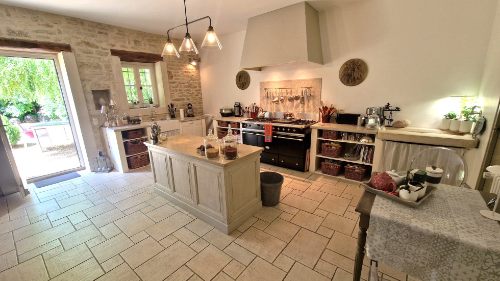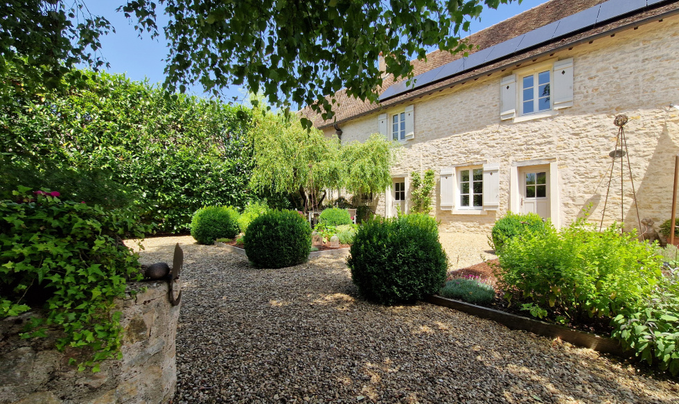 Découvrez juste à côté de Meursault cette magnifique longère rénovée avec goût. Complètement à l'abri des regards, nichée derrière un grand portail au milieu d'un écrin de verdure, la maison principale est complétée par deux maisonnettes en pierre à usage de bureau pour l'une et d'atelier pour l'autre. Vos voitures peuvent être stationnées sous un grand carport. Vous prendrez plaisir à cueillir les nombreux fruits du verger qui se trouve derrière l'espace dédié à la piscine. Le jardin, très bien entretenu a été pensé, aménagé et arboré avec soin. La maison dispose d'une entrée avec grand placard, toilettes invités et accès à la buanderie. Dans le prolongement, ouverts sur la verdure, le séjour, la cuisine avec son arrière-cuisine, le salon avec poêle à bois et le deuxième salon avec la grande cheminée ont été aménagés dans le respect des matériaux d'origine. La magnifique verrière artisanale faite par un ferronnier ouvre la grande pièce en cathédrale sur le jardin. En surplomb, un espace en mezzanine est actuellement à usage de bureau et dessert deux chambres, une salle d'eau, un toilette indépendant ainsi que la suite parentale avec grand dressing et salle d'eau privative. Dorothée LOZACHMEUR - 06.63.53.13.48 - EI Agent Commercial RSAC Dijon 822 304 713. "Les informations sur les risques auxquels ce bien est exposé sont disponibles sur le site Géorisques : www.georisques.gouv.fr ".