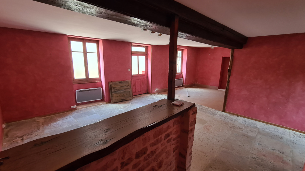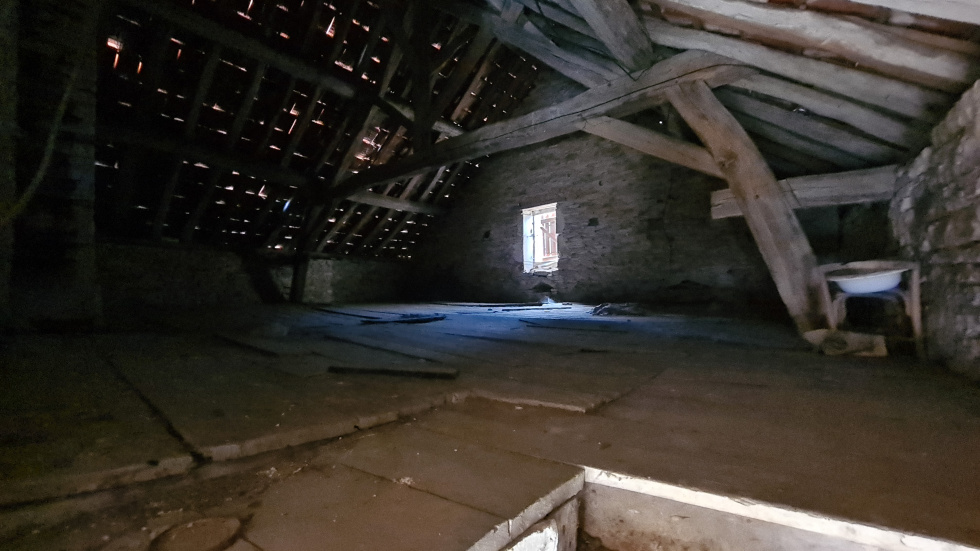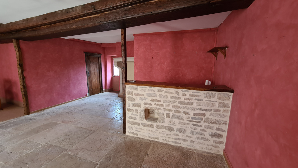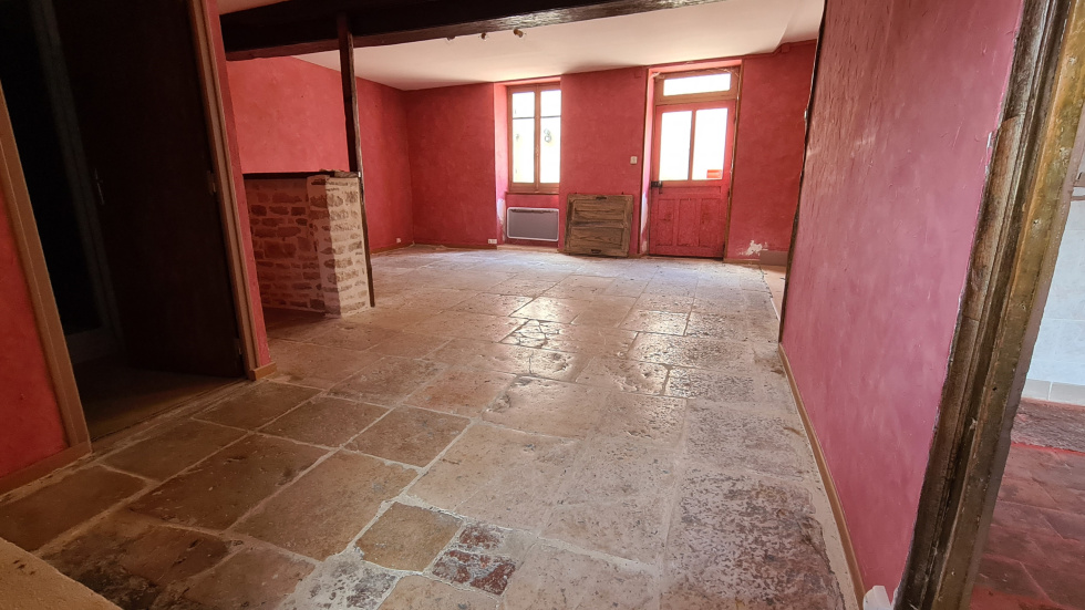 Au rez-de-chaussée, pièce de vie, cuisine et salle d'eau avec wc, grenier sur l'ensemble de la surface. Dépendances sur l'arrière, belle cave voûtée sous l'habitation.