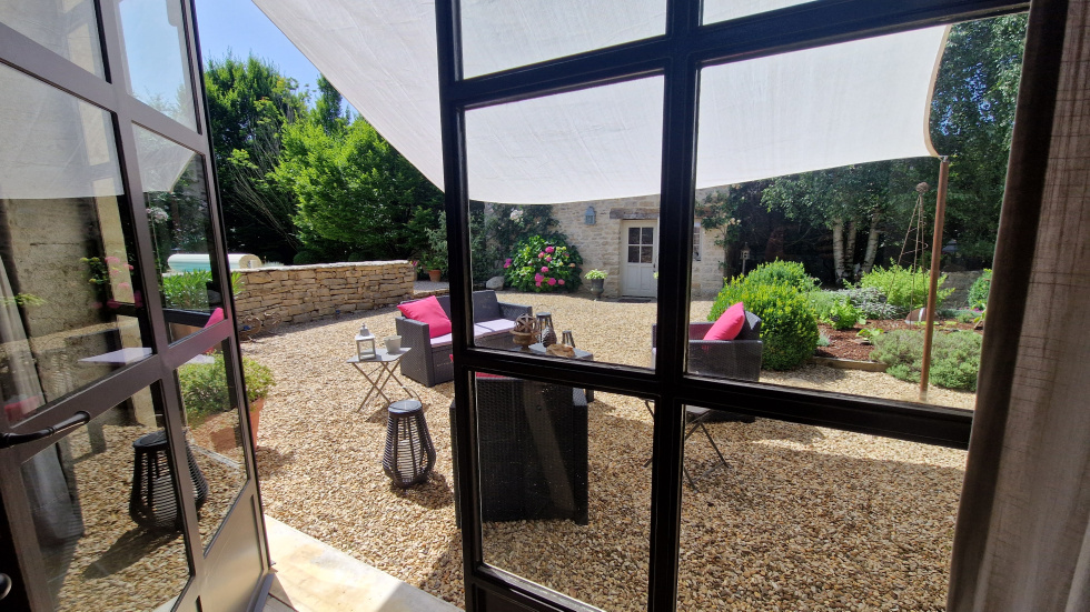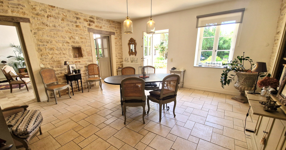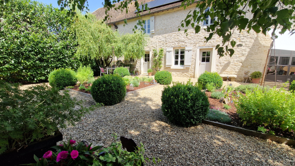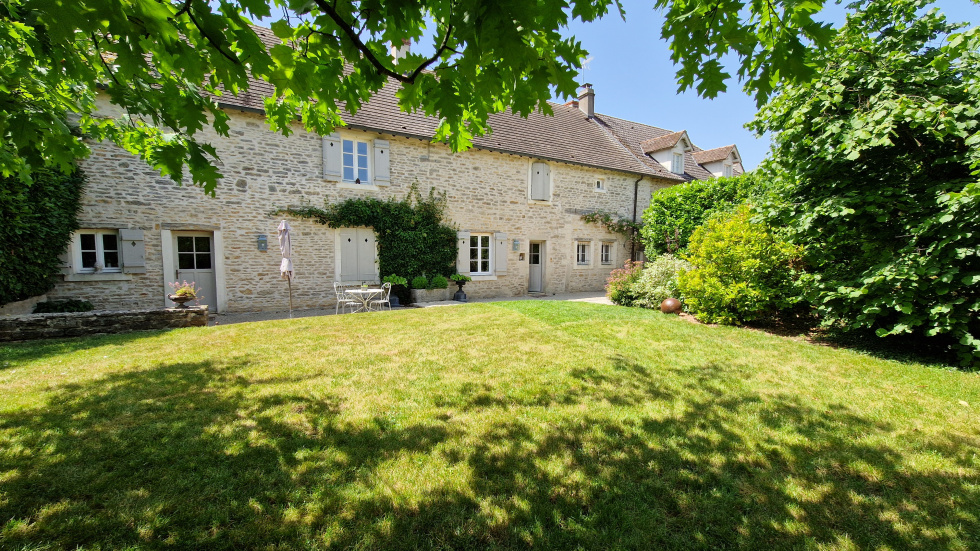 Découvrez juste à côté de Meursault cette magnifique longère rénovée avec goût. Complètement à l'abri des regards, nichée derrière un grand portail au milieu d'un écrin de verdure, la maison principale est complétée par deux maisonnettes en pierre à usage de bureau pour l'une et d'atelier pour l'autre. Vos voitures peuvent être stationnées sous un grand carport. Vous prendrez plaisir à cueillir les nombreux fruits du verger qui se trouve derrière l'espace dédié à la piscine. Le jardin, très bien entretenu a été pensé, aménagé et arboré avec soin. La maison dispose d'une entrée avec grand placard, toilettes invités et accès à la buanderie. Dans le prolongement, ouverts sur la verdure, le séjour, la cuisine avec son arrière-cuisine, le salon avec poêle à bois et le deuxième salon avec la grande cheminée ont été aménagés dans le respect des matériaux d'origine. La magnifique verrière artisanale faite par un ferronnier ouvre la grande pièce en cathédrale sur le jardin. En surplomb, un espace en mezzanine est actuellement à usage de bureau et dessert deux chambres, une salle d'eau, un toilette indépendant ainsi que la suite parentale avec grand dressing et salle d'eau privative. Dorothée LOZACHMEUR - 06.63.53.13.48 - EI Agent Commercial RSAC Dijon 822 304 713. "Les informations sur les risques auxquels ce bien est exposé sont disponibles sur le site Géorisques : www.georisques.gouv.fr ".