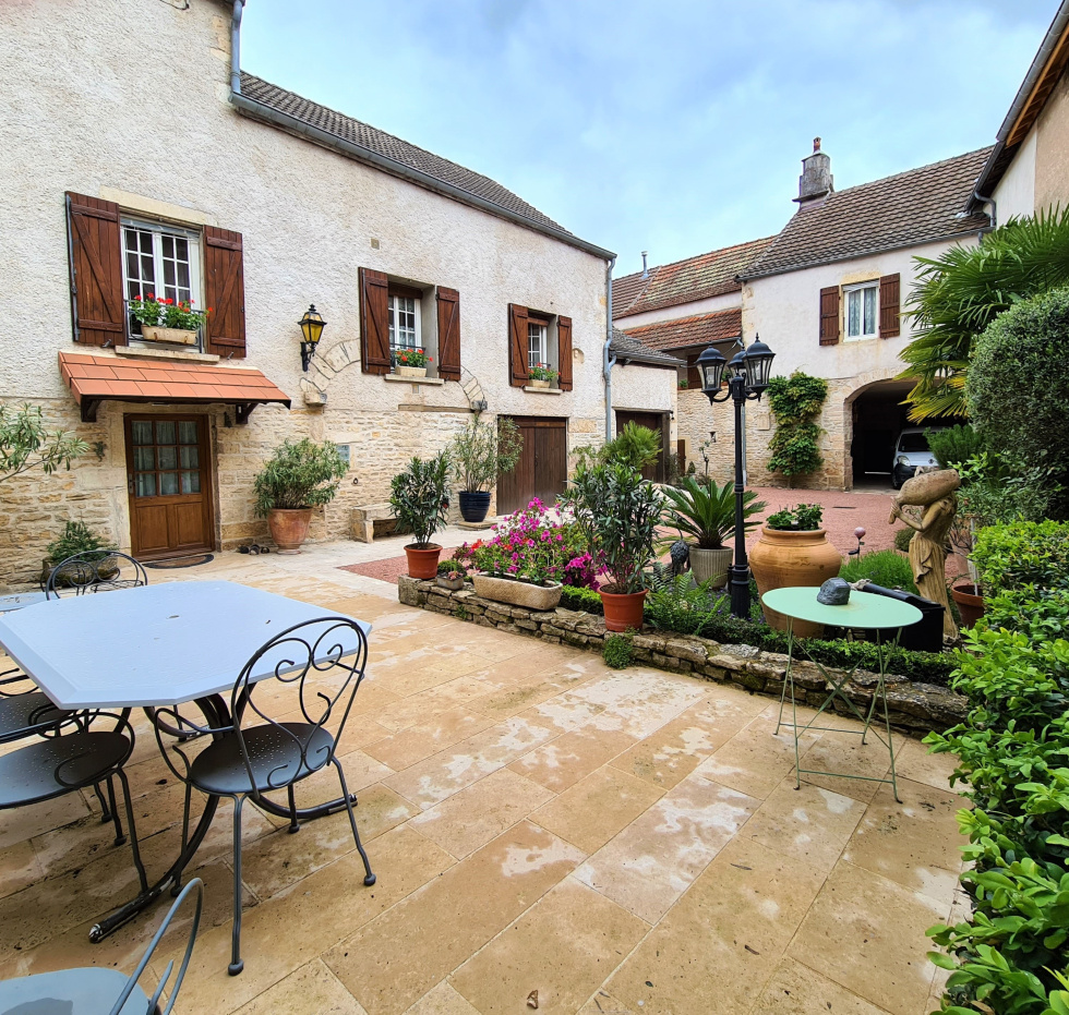 Ensemble immobilier à découvrir au coeur du village de Rully. Derrière un grand porche vous découvrirez une vaste cour arborée et chaleureuse autour de laquelle sont disposés une maison principale, deux appartements indépendants qui peuvent communiquer pour ne faire qu'un si besoin, deux garages, caves et dépendances. Vous entrez dans la maison principale en rez-de-cour et accèderez au premier étage par un bel escalier en pierre donnant dans la pièce de vie, avec lumière traversante, la cuisine séparée est équipée et très bien aménagée. Enfin, un couloir dessert deux chambres, une salle d'eau et des toilettes. Au second, deux vastes chambres complètent cette partie. En rez-de-cour vous trouverez un espace fonctionnel comprenant buanderie, chaufferie et cellier. Un bâtiment indépendant, avec accès par la cour ou directement par la rue propose deux appartements ou un grand, avec deux caves. Sur l'arrière de la maison principale une deuxième cour comlétement abritée vous permettra également de profiter des extérieurs. Ensemble très bien pensé notamment pour de la location annuelle, saisonnière ou une vie de famille "chacun chez soi". Chauffage par pompe à chaleur, panneaux solaires, adoucisseurs... Dorothée LOZACHMEUR - 06.63.53.13.48 - Agent Commercial RSAC Dijon 822 304 713. "Les informations sur les risques auxquels ce bien est exposé sont disponibles sur le site Géorisques : www.georisques.gouv.fr ".